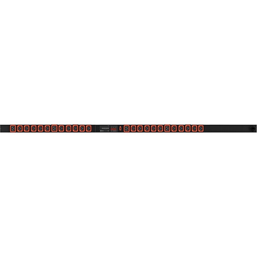 The Vertiv Geist 14240230 is a 16A, 230V, 0U metered vertical rack power distribution unit. It has 20 Locking IEC C13 outlets, 4 Locking IEC C19 outlets and a 3m power cord with 2P+E (IP44) plug providing 3.6kW in power capacity. This Metered Data Center rPDU provides a real-time view of power usage from a local LED display. It also offers Visible Light Communication technology through the Vertiv rPDU scanner app, which allows you to see complete power usage data locally from a mobile device. Each rack mount PDU undergoes individual testing for functionality to ensure your network is powered by a reliable smart power strip. The unit comes with a three-year warranty that can be extended to five-years if registered within 120 days of purchase.